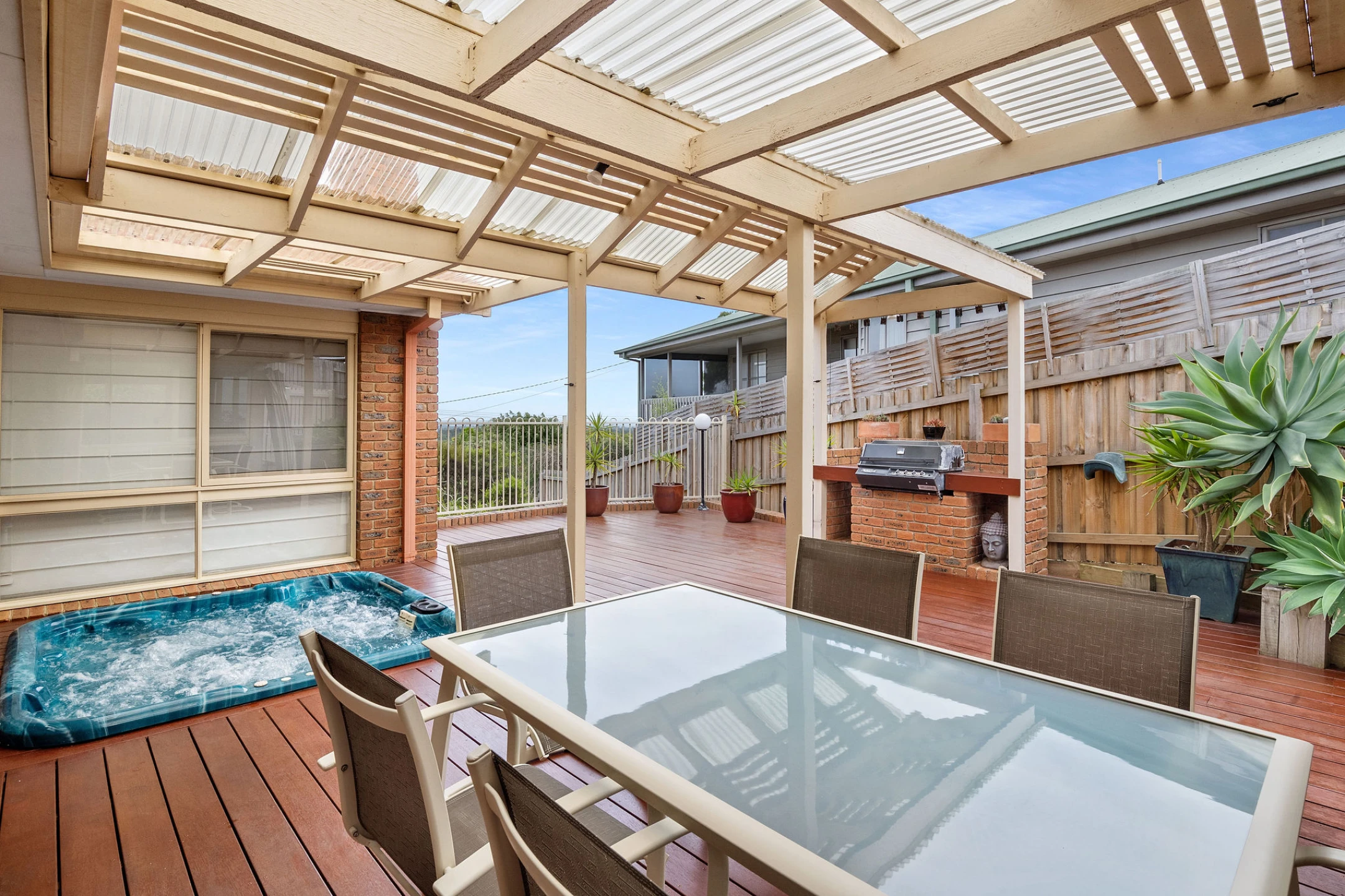 Well loved and well kept, the house retains a warm, welcoming atmosphere enhanced by an open fireplace—a cozy feature for those cooler nights. Freshly polished slate flooring looks and feels inviting. The outdoor spa and entertaining deck provide ideal spots for relaxation while enjoying the serene bay views.